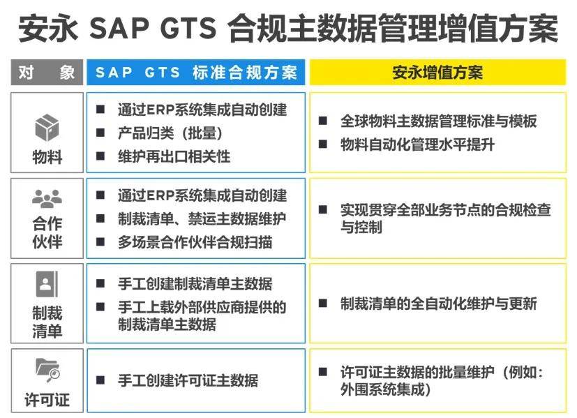 安永在SAP GTS标准合规主数据管理方案的基础上,为客户提供的增值方案,有效解决了客户过往主数据管理效率低、实时性差、系统分散的问题。